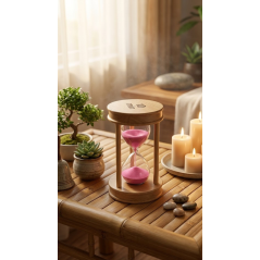 Apportez une touche de sérénité et d’élégance à votre espace avec ce sablier en bois au design soigné. Conçu avec une structure en bois naturel de haute qualité et un verre transparent, il contient un sable rose fin qui s’écoule délicatement, créant une atmosphère relaxante et harmonieuse.